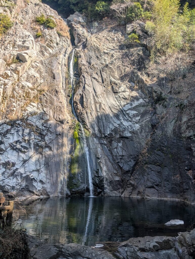 「雄滝」に到着しましたが、やはり滝の水は普段の10分の1くらい。