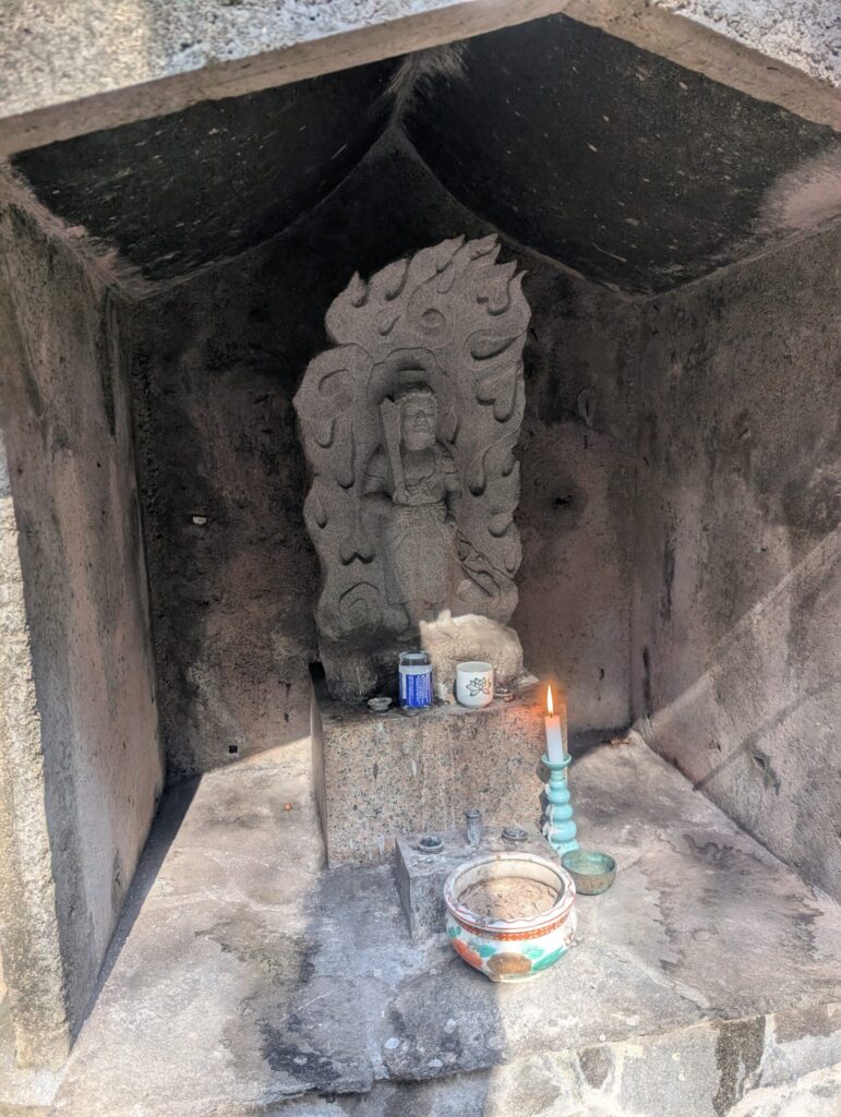 雄滝の滝つぼ横にある不動明王さんは滝のパワーをまとっているので、とても力が強いです。