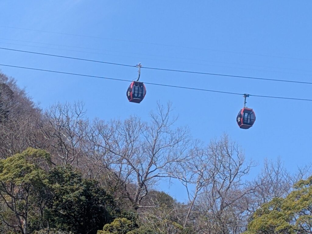 空高くに見える新神戸ロープウェー「神戸夢風船」。