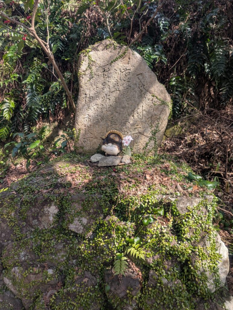 200株植樹をした記念碑には、かわいいへそ出しタヌキさんたいます。