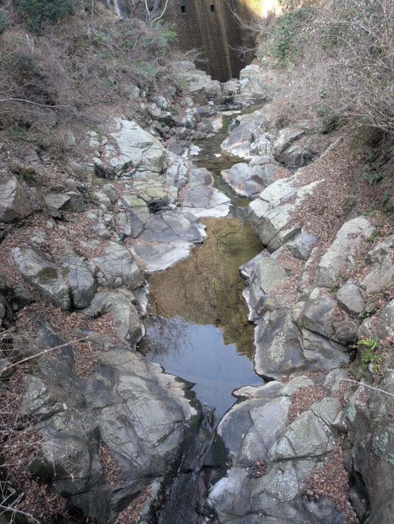 分水堰堤は、布引ダムに流れ込む土砂や流木をせき止めてくれます。